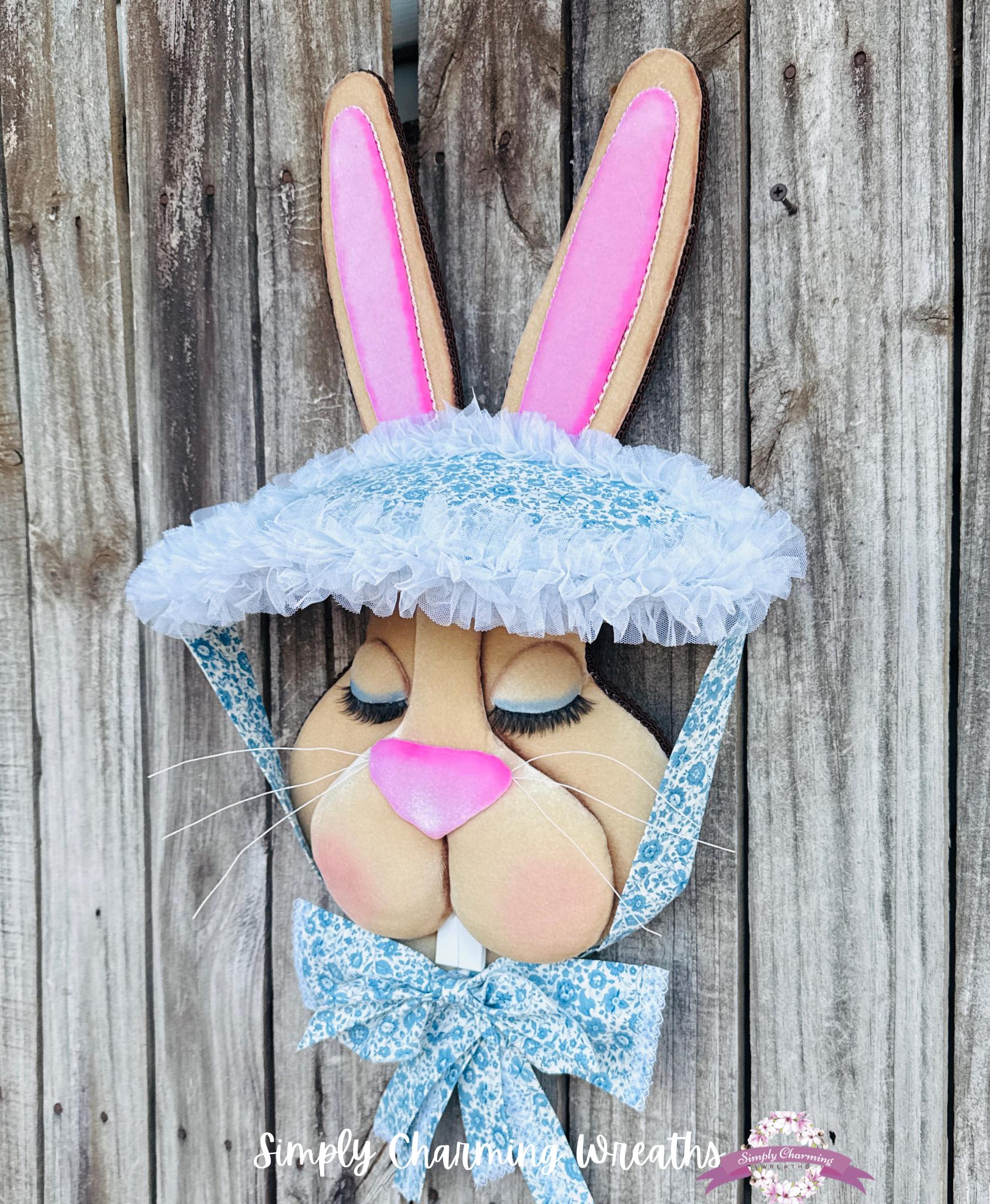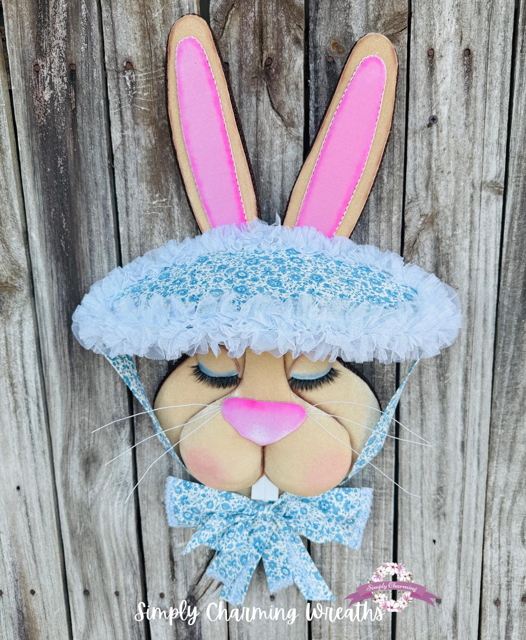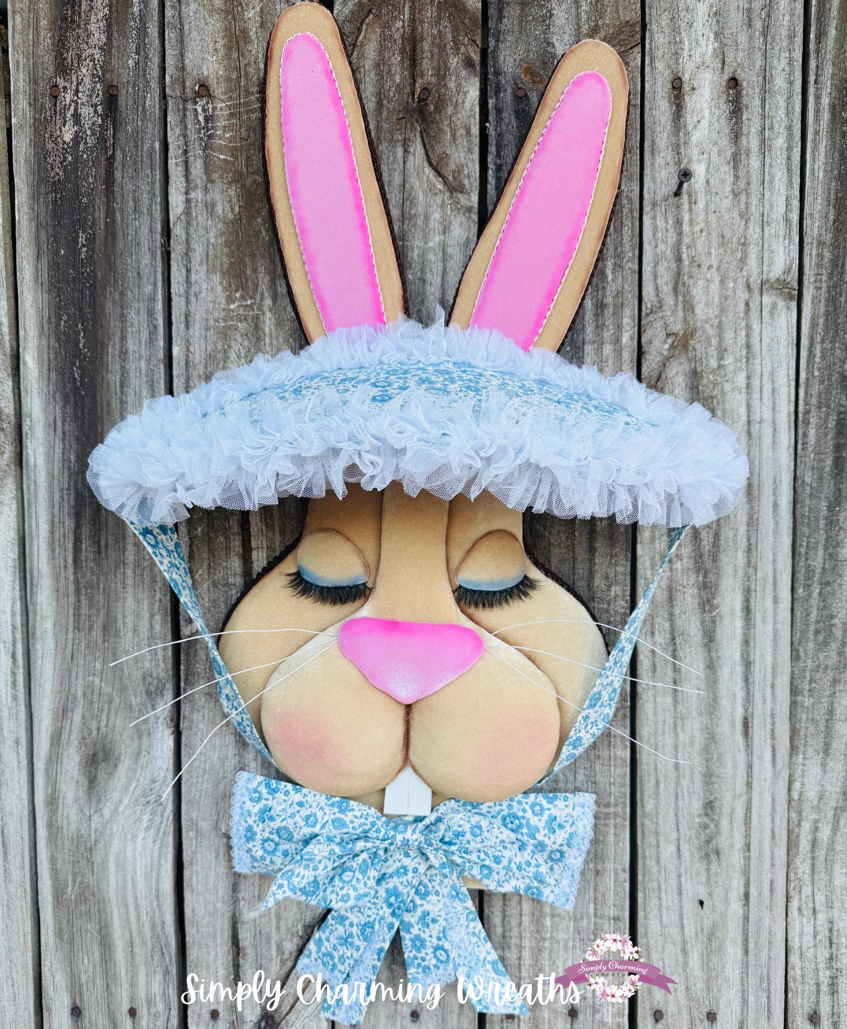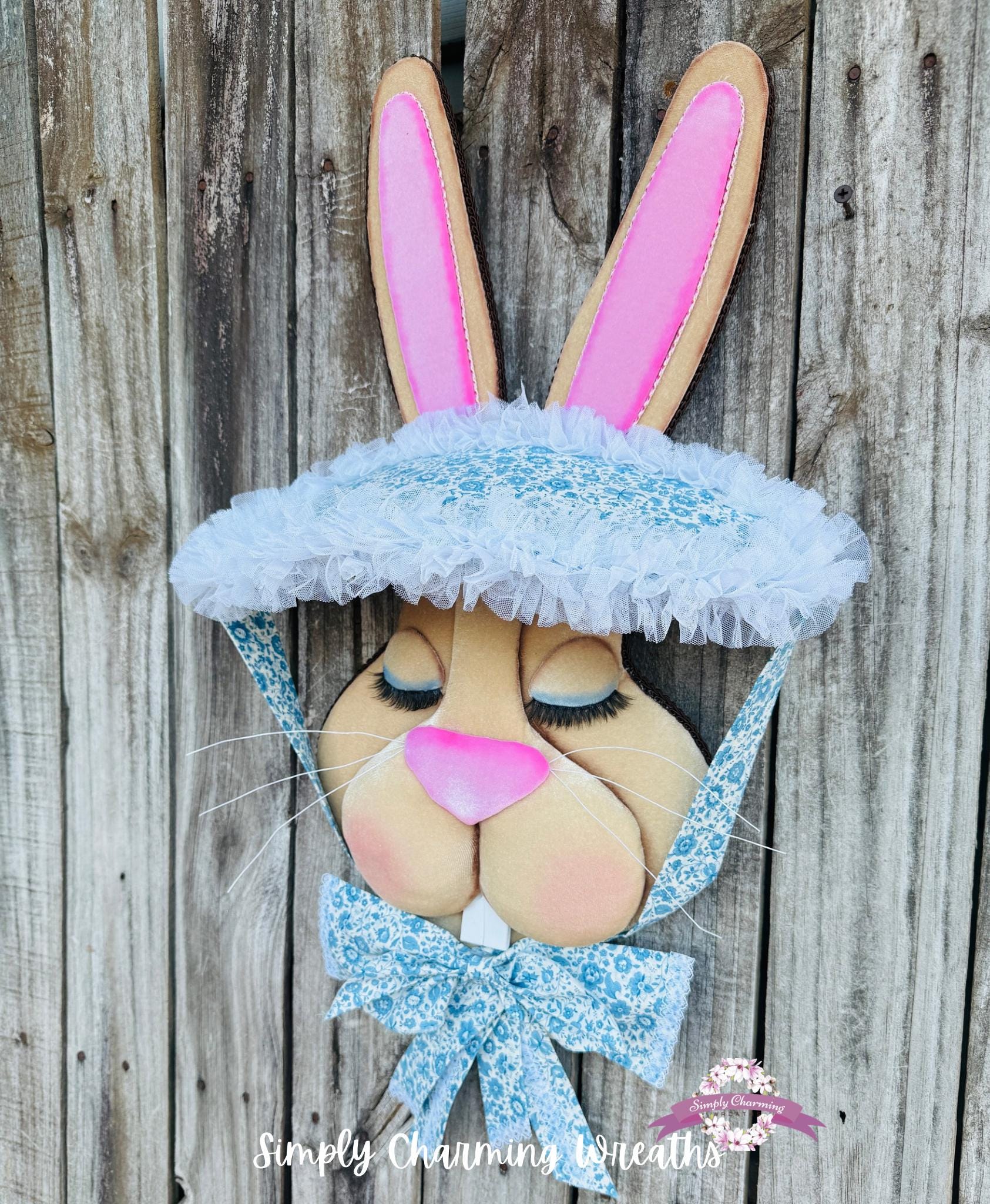 Introducing Tea Time Bonnie, the sweetest Bonnie lass ready to charm your wreath or door! This handmade bunny face (head only) features soft light brown velour fabric, sleepy eyes, pink inner ears and pink nose, delicate whiskers, and rosy cheeks for an irresistibly cute expression.