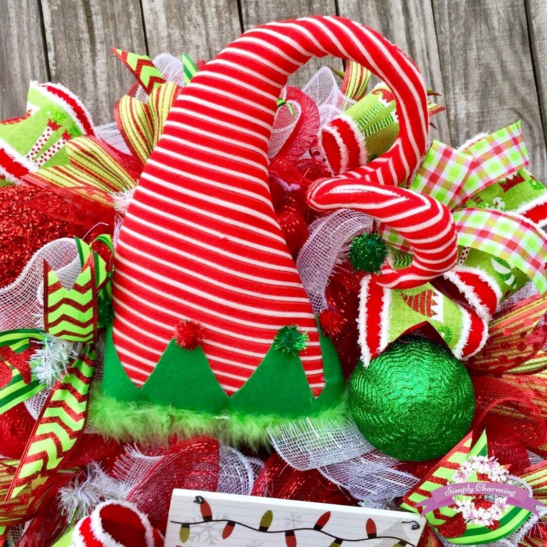 Christmas Elf Wreath, Red And Green Christmas Elf Wreath for Front Door, Christmas Wreath, Elf Christmas Decoration, Cute Elf Wreath