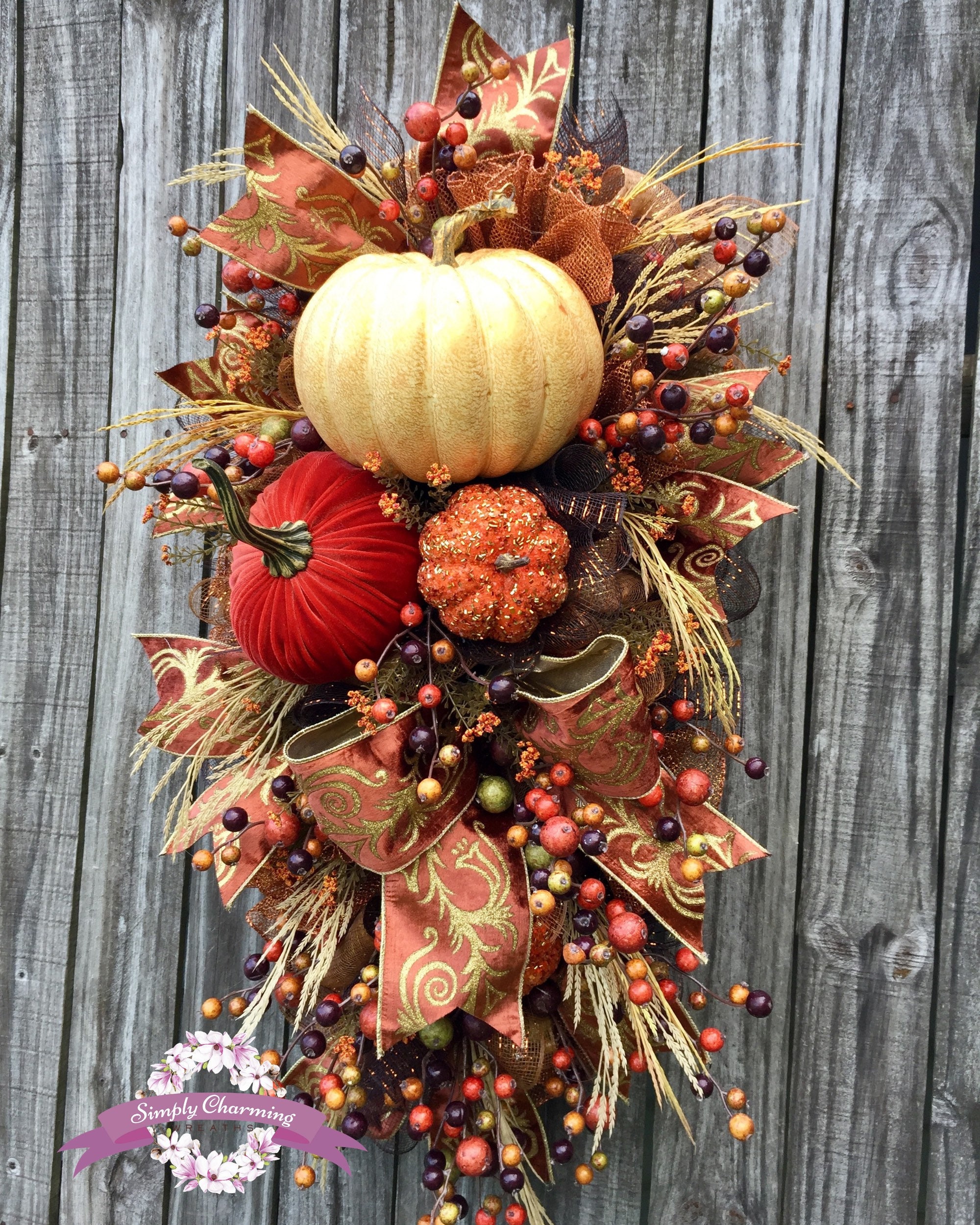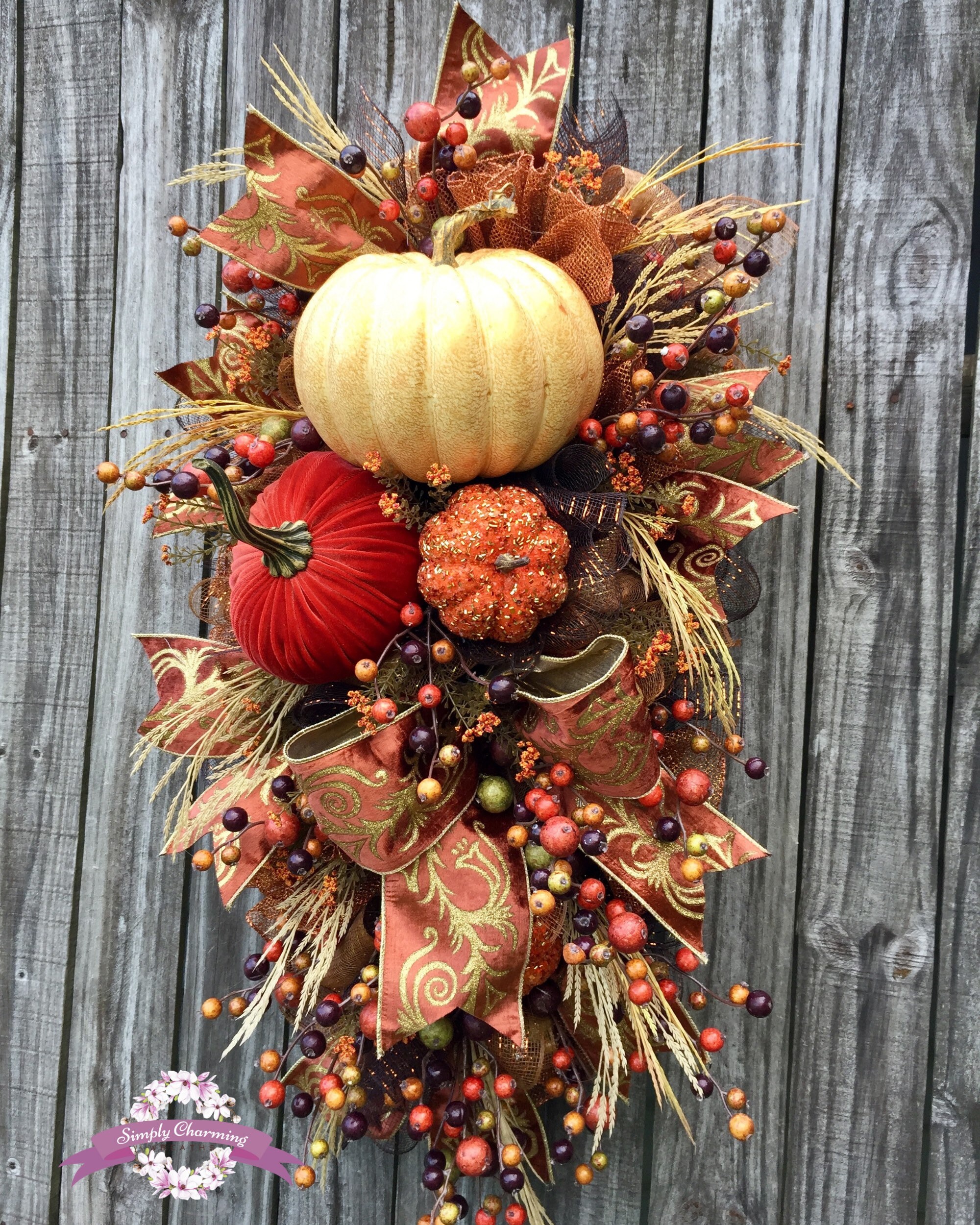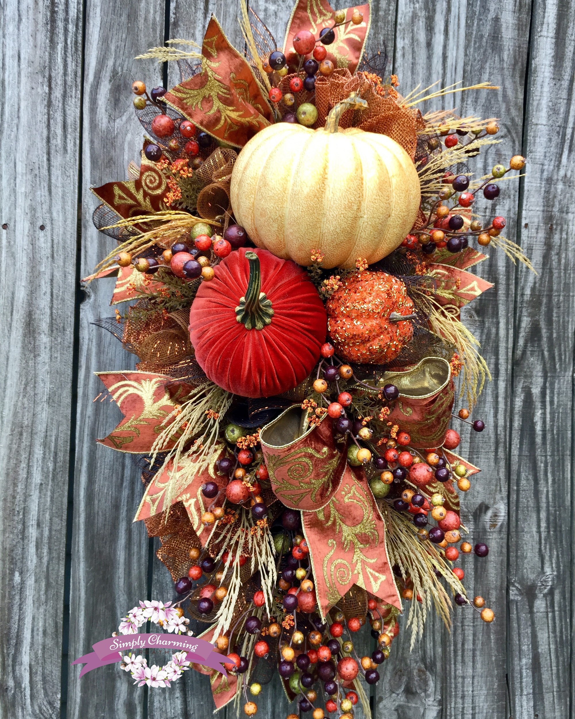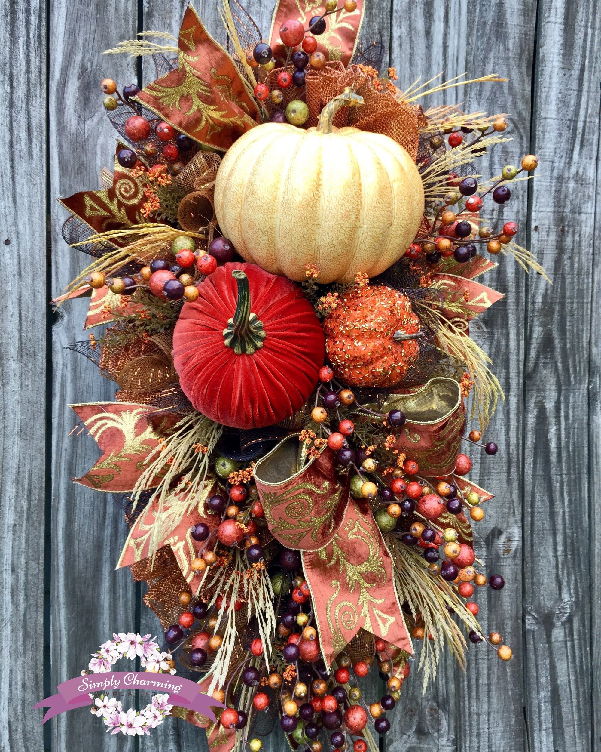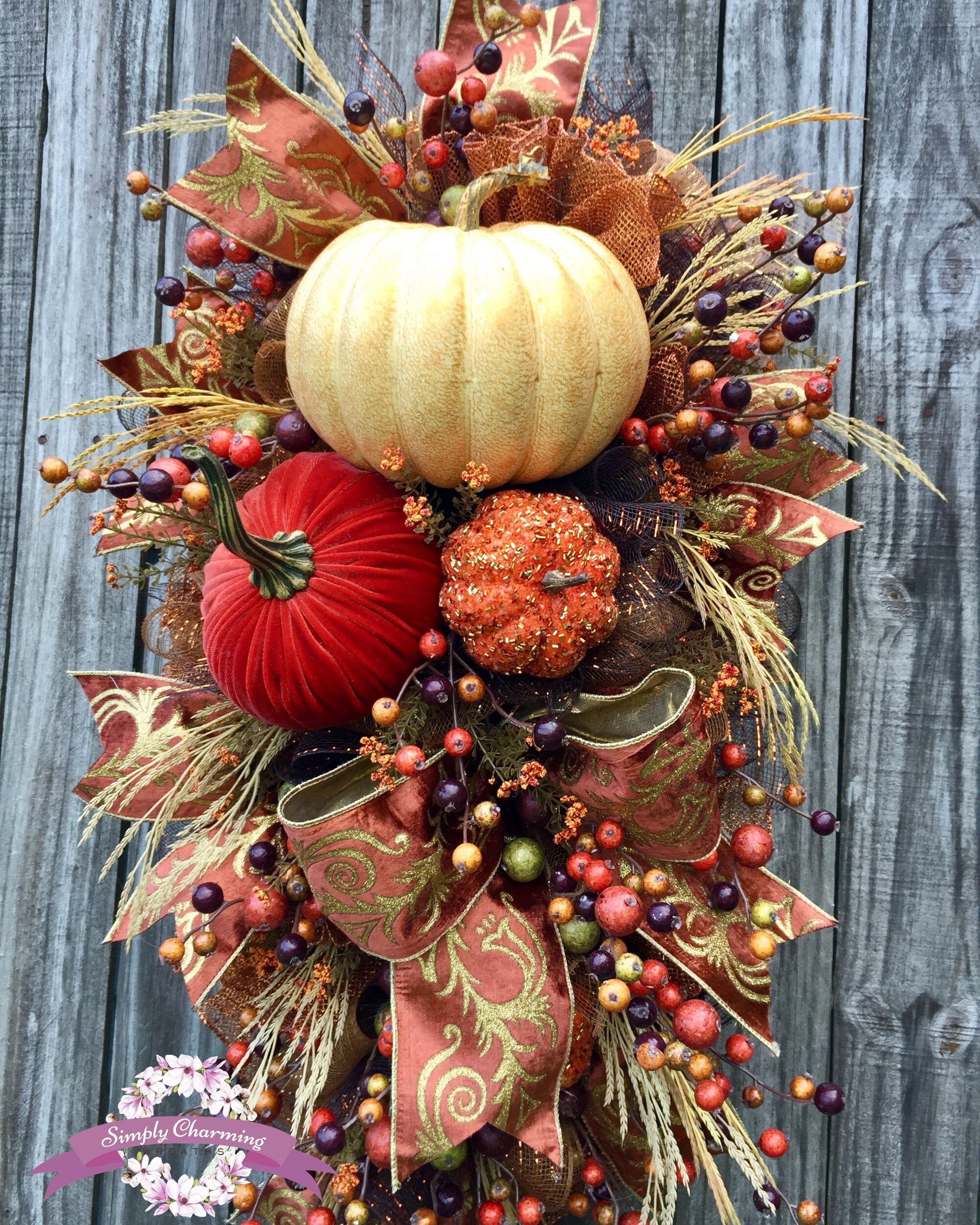 Fall pumpkin and Berry Wreath, Fall Pumpkin Wreath, Autumn Wreath, Fall Swag, XL Fall Wreath, Deluxe Fall Wreath