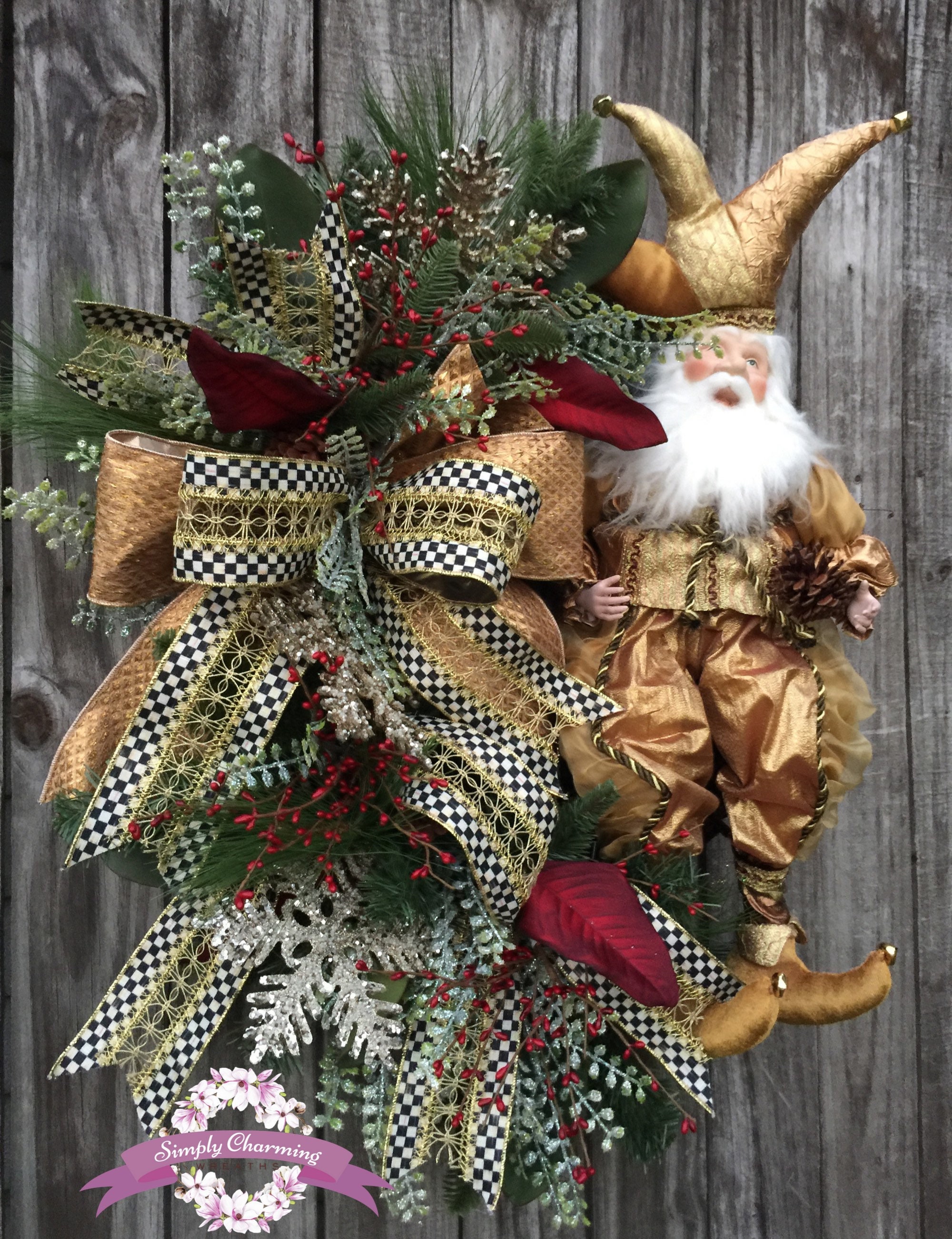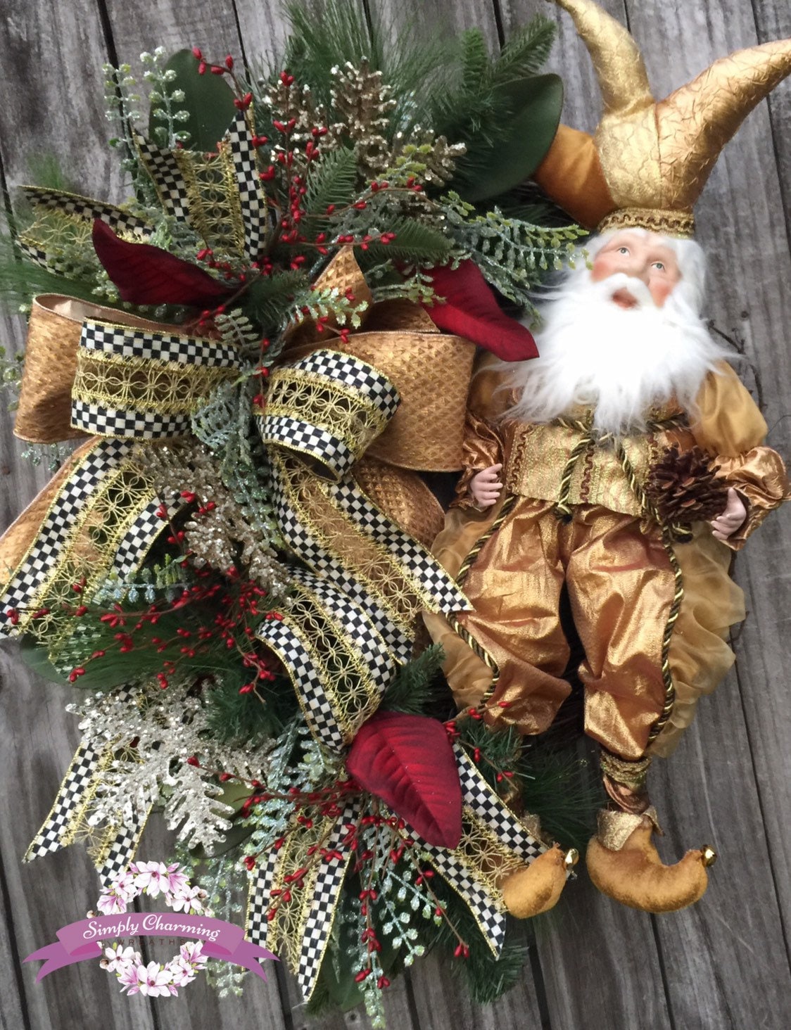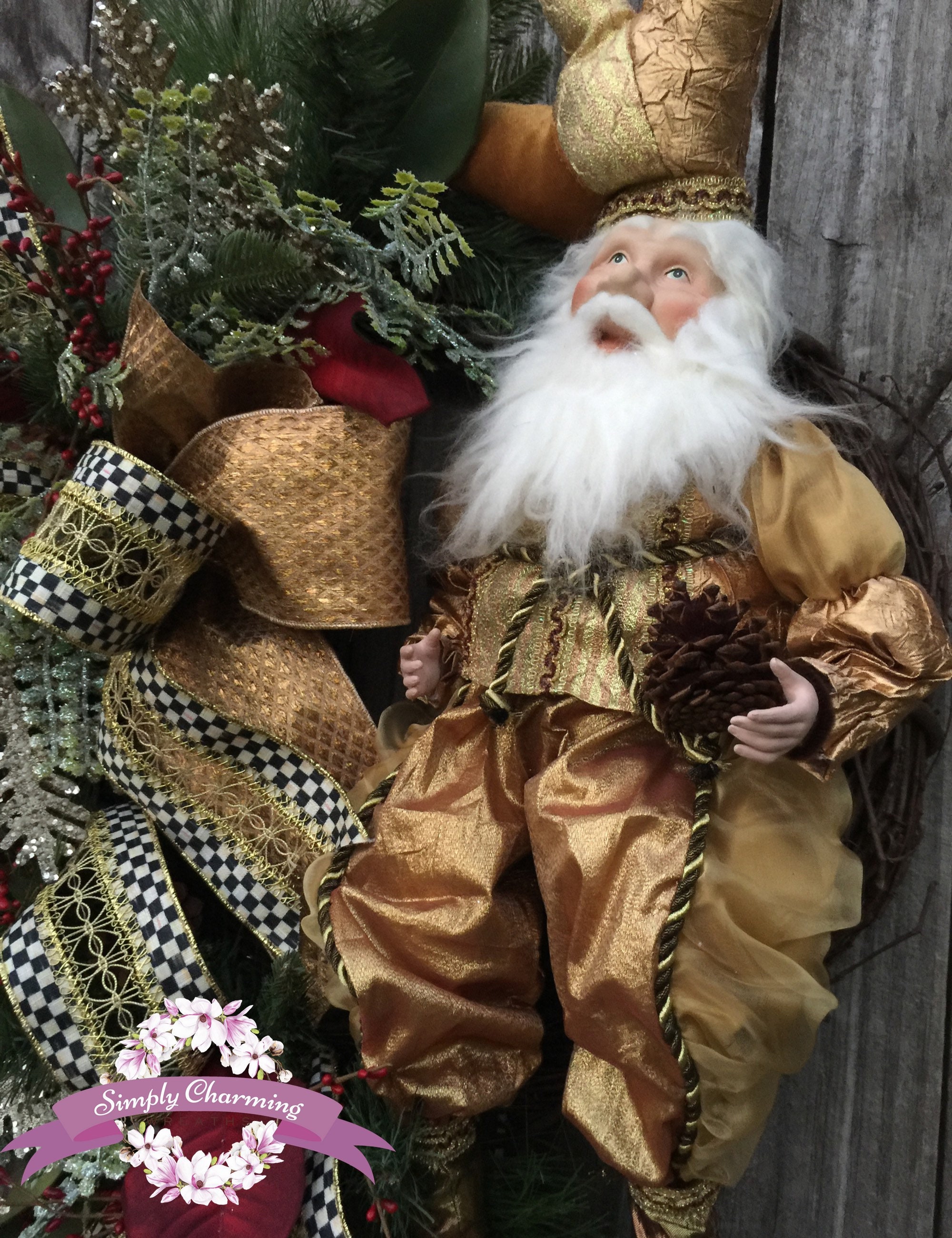 Elegant Christmas Wreath, Santa Wreath, Holiday Wreath, Floral Christmas Wreath