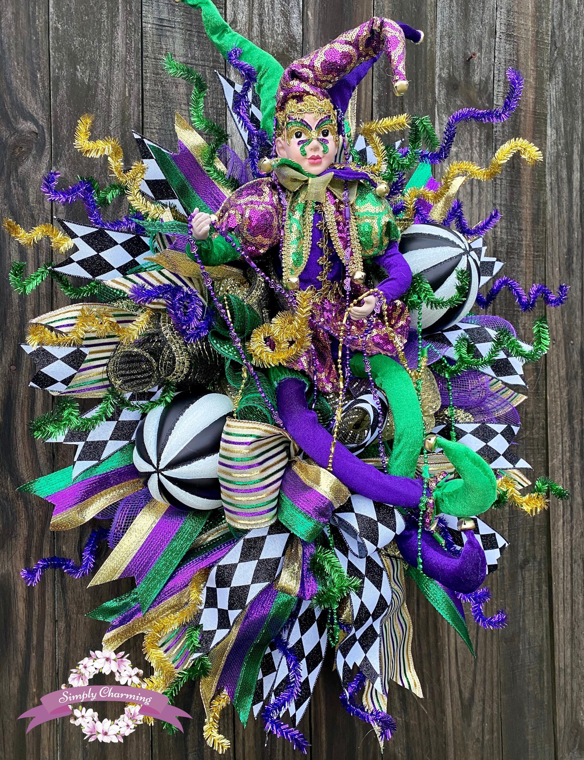 Mardi Gras is fast approaching!!!! Celebrate the spirit of the Holiday by adding this vibrant, beautifully made whimsical wreath to your front door decor!