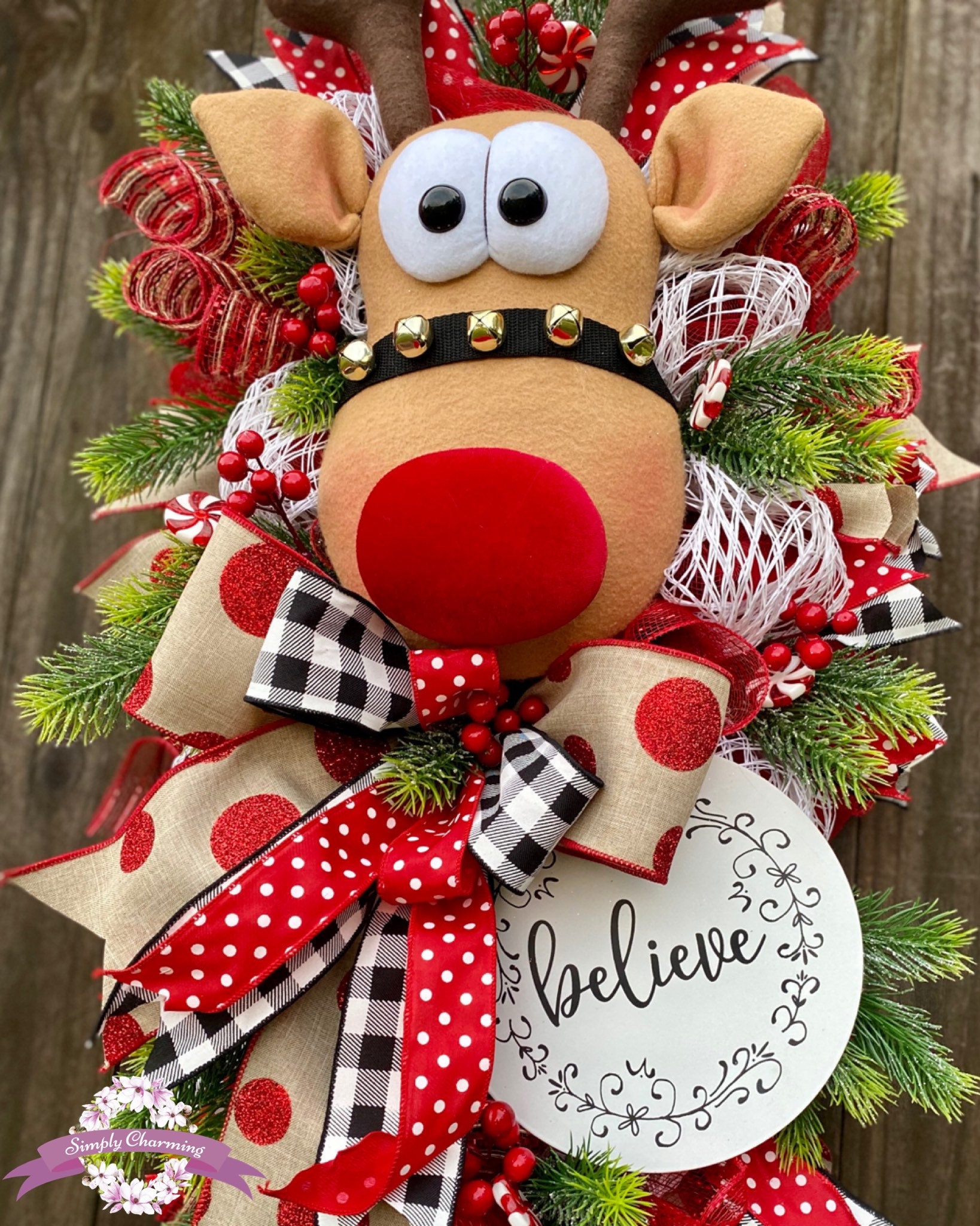 Christmas Reindeer Wreath, Christmas Door Wreath, Christmas Swag, Reindeer Wreath