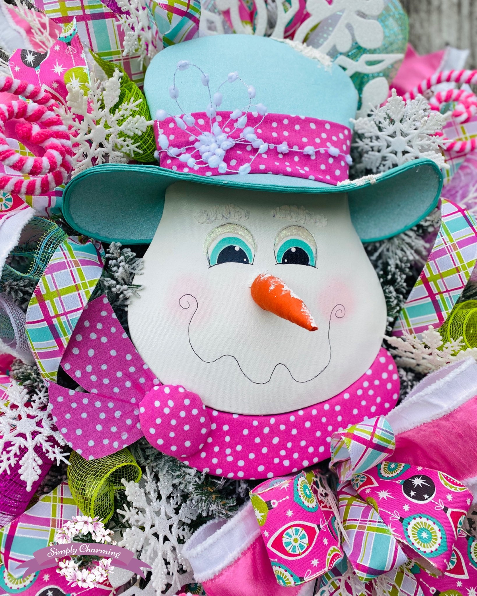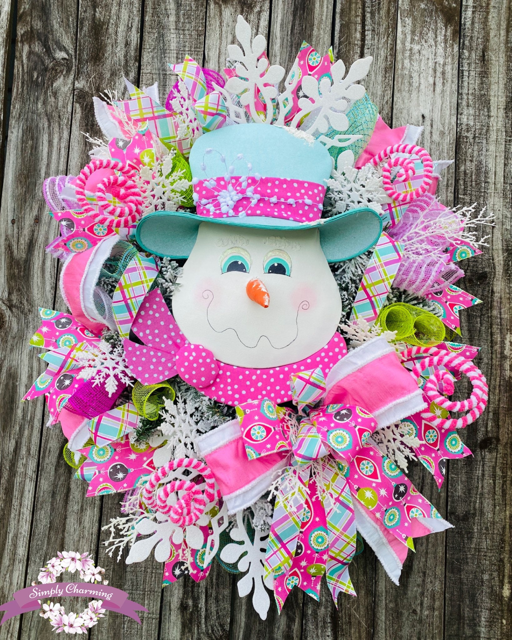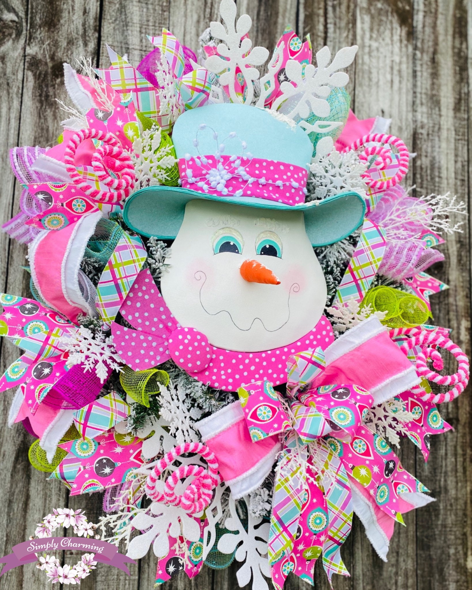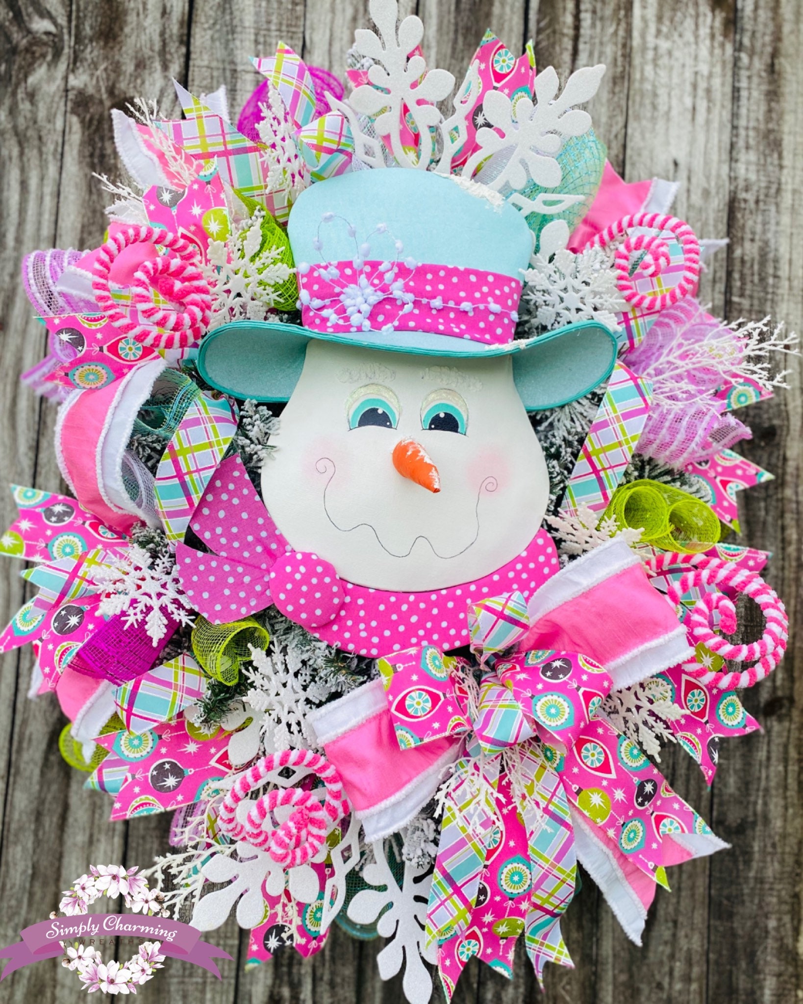 🎄DESCRIPTION: Full of deco mesh with a variety of wired ribbons matching all the vibrant colors to the adorable snowman. This sweet snowman is surrounded by snowflakes and gorgeous ribbons. Get ready for the Christmas season and add magical delight to your holiday decor!!!